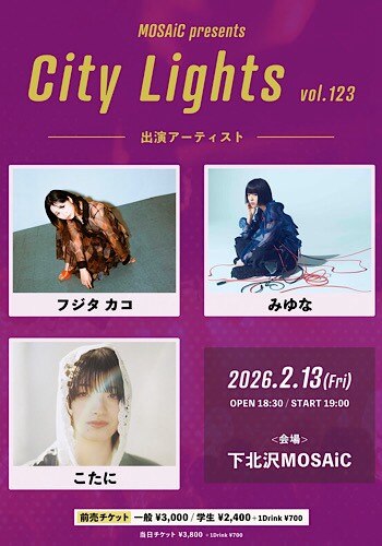 2月13日に下北沢MOSAiCにて開催されるMOSAiC presents「City Lights vol.123」